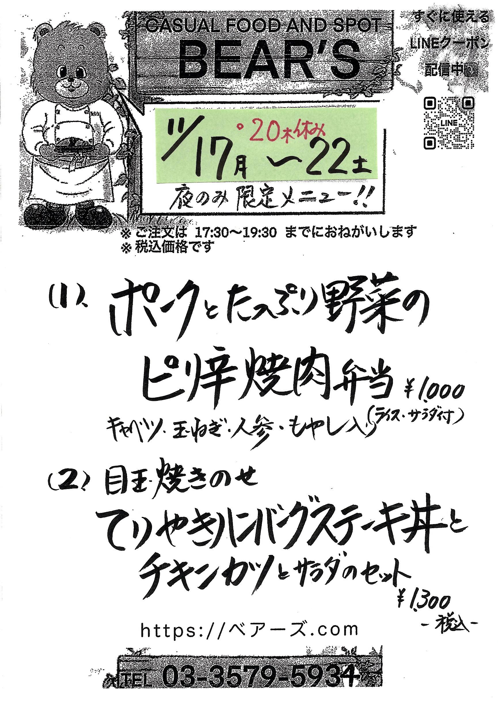 | 10月24日 | 【自粛営業期間終了のお知らせ】東京都の協力要請に基づき、自粛期間は10月24日までとなります。(お食事、アルコール L.O.20時) 皆様のご来店を心よりお待ちしております。 |