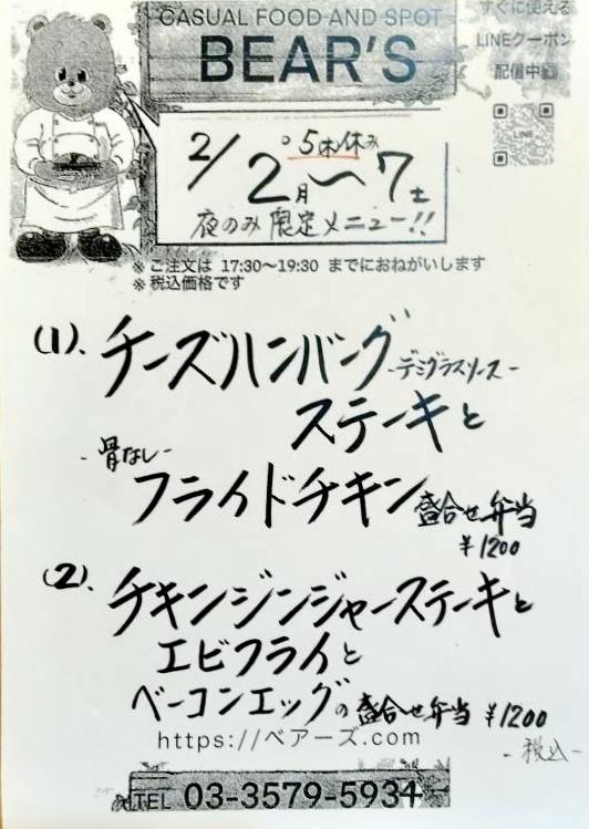 | 2月13日 | 【時短営業・アルコール提供停止継続のお知らせ】東京都蔓延防止重点措置の適用により、2022年2月14日(月)〜3月21日(月)の期間中、酒類の提供を終日停止させて頂きます。 従来は21時30分閉店ですが、営業時間を20時閉店 19時ラストオーダーとし、時短営業に変更させて頂きます。どうぞご了承くださいませ。皆様のご来店を心よりお待ちしております。 |